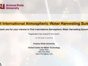 2nd Advancement in Atmospheric Water Harvesting Webinar